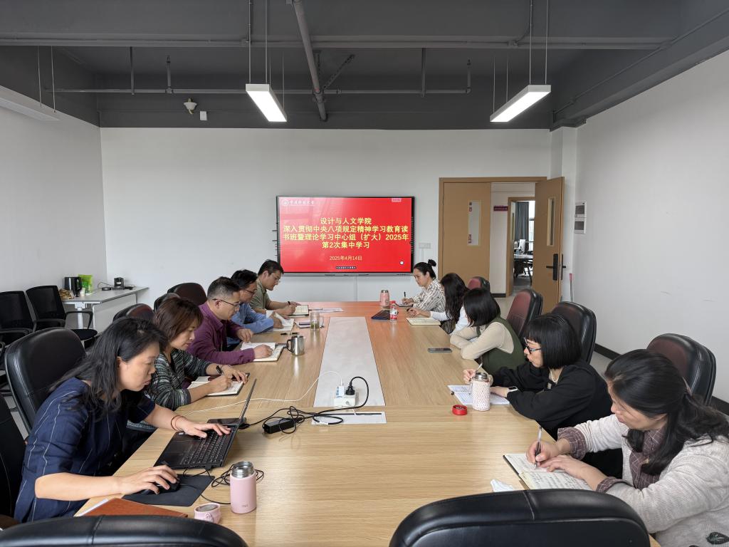 4月14日下午,设计与人文学院深入贯彻中央八项规定精神学习教育读书班暨理论学习中心组(扩大)2025年第4次集中学习,在博闻楼J321会议室开展。学院党总支委员、科级干部、支部书记参会,会议由学院党总支书记何小松主持。