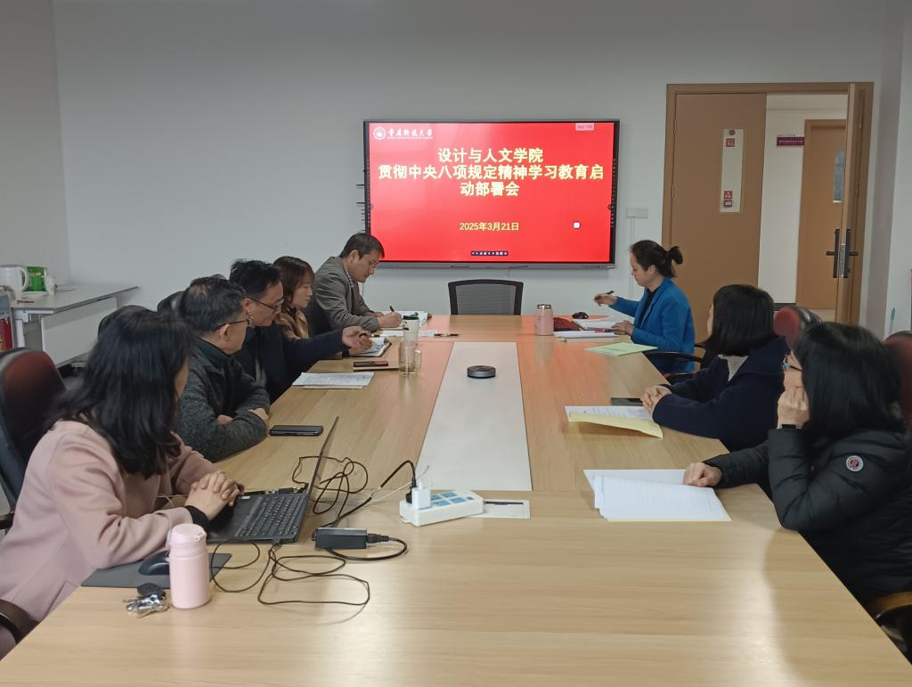 3月21日,设计与人文学院党总支根据学校党委统一部署安排,在博闻楼J321会议室召开深入贯彻中央八项规定精神学习教育动员部署会。学院班子成员、党总支委员、科级干部参加会议。会议由学院党总支书记何小松主持。