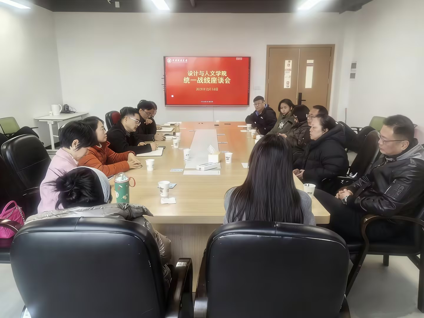 1218日,设计与人文学院学院党总支在博闻楼J321会议室召开统一战线座谈会,学院班子成员、总支委员及民主党派和无党派代表10余人参加集体座谈,会议由党总支书记何小松主持。