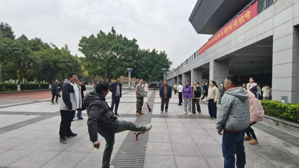 此次师生趣味运动会设置了跳大绳、踢毽子、投壶、两人三足、乒乓球接力、拔河比赛等项目,都需要师生共同参与完成。比赛现场热闹非凡,参赛队员齐心协力、奋勇争先,加油声、呐喊声、欢声笑语连成一片。参赛师生纷纷表示,此次活动为大家提供了一次锻炼身体和促进交流的机会,今后将走出办公室和寝室,积极参加体育锻炼,以强健的体魄、昂扬的斗志和务实的行动为学院发展添砖加瓦。