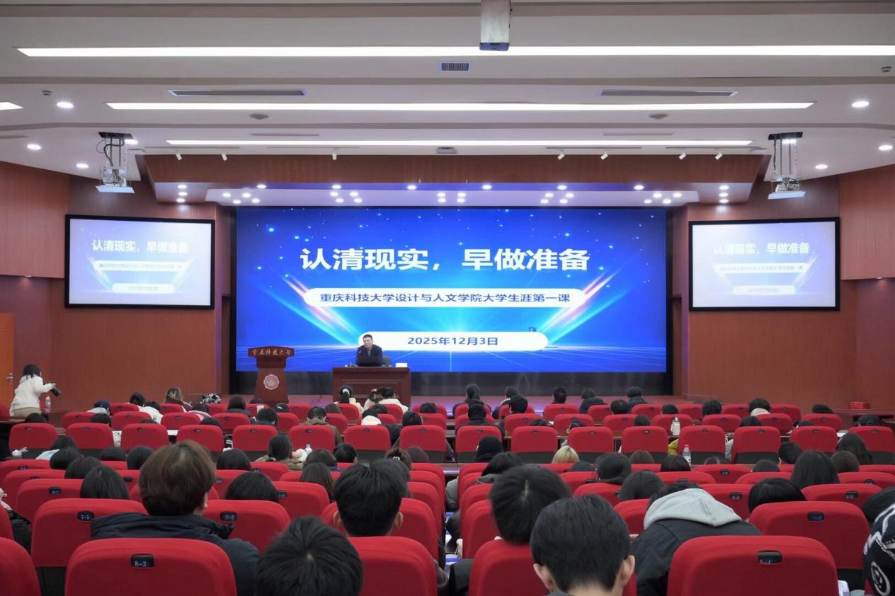 为涵育优良学风,引导2025级新生树立学习规划意识,12月3日晚,设计与人文学院于学术报告厅开展2025级新生生涯规划教育暨优良学风建设表彰大会。相关职能部门领导、学院班子成员、各系主任、全体辅导员、2025级全体新生及获奖学生代表参会,会议由学院党总支副书记周述敏主持。