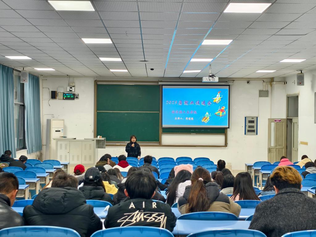12月17日下午,设计与人文学院在主教楼A106召开2025届就业工作促进会。学院党总支副书记周述敏、2025届毕业生、毕业班辅导员参会。
