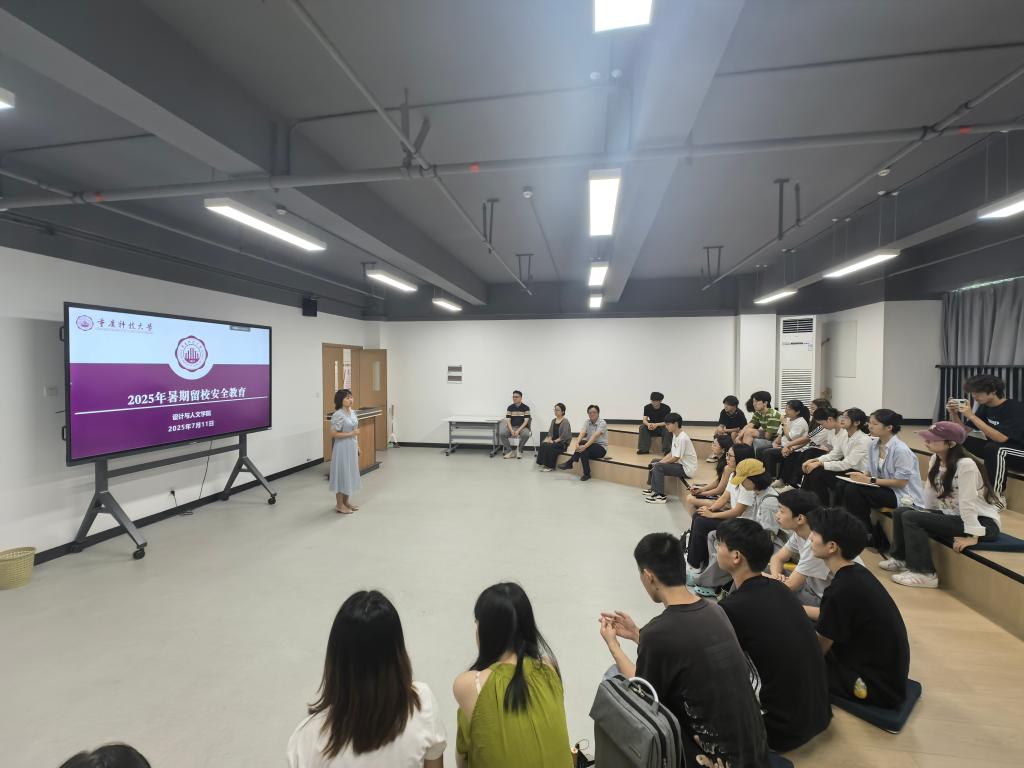 为切实加强暑期留校学生管理,筑牢安全防线,7月11日,设计与人文学院在博闻楼J314召开2025年暑期留校学生安全教育。学院党总支书记何小松、党总支副书记周述敏、指导教师及相关辅导员和全体留校学生参加会议,会议由周述敏主持。